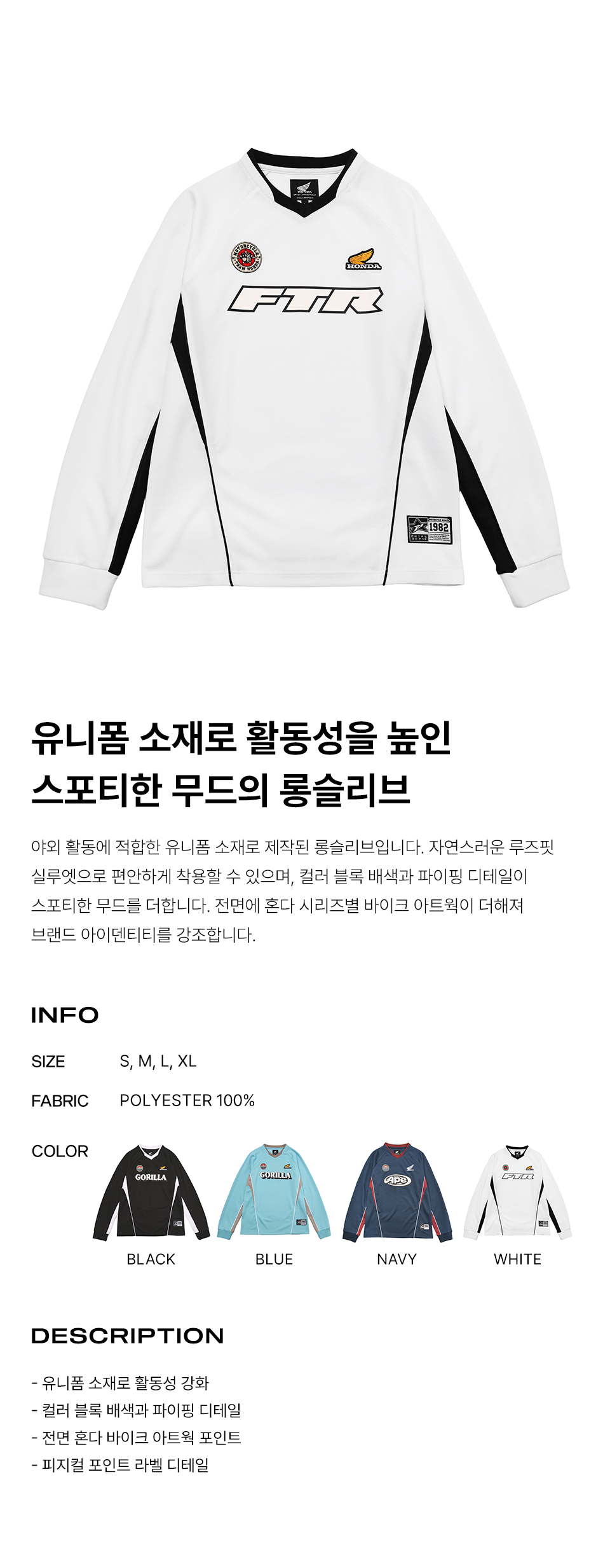 혼다 모터사이클 아트워크 컬러 블록 롱 슬리브 화이트