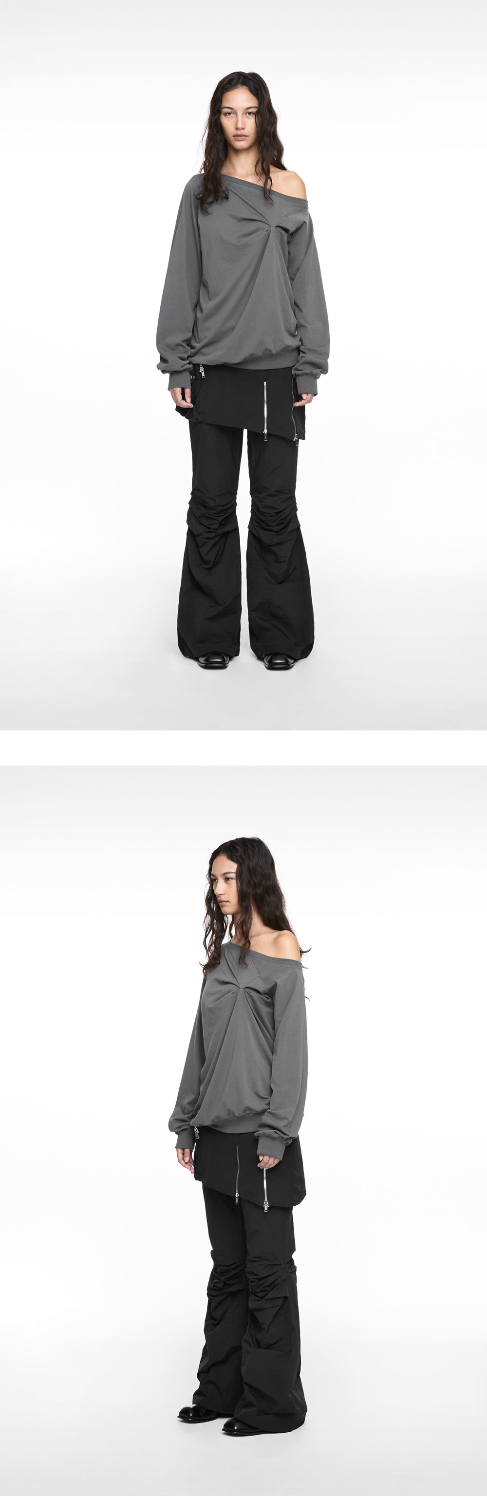 나체 부츠컷 스커트 팬츠 유니섹스 블랙 - 25FW