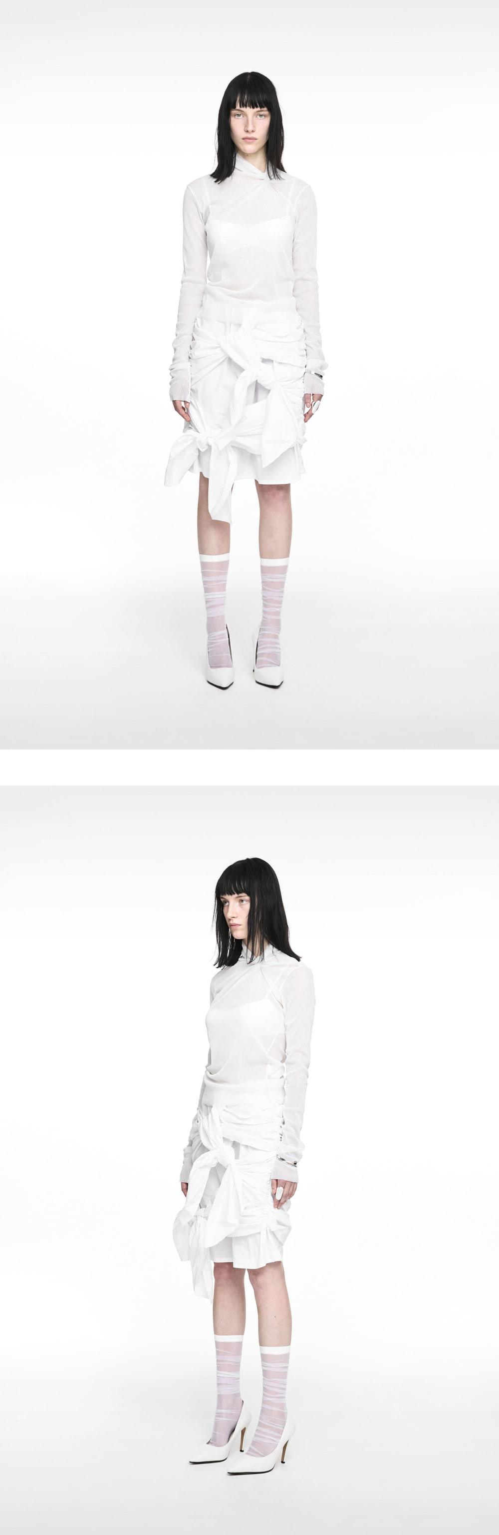 *사은품 소진시까지 구매한 고객께 키링 또는 거울 중 하나 랜덤으로 사은품 제공 *반품 교환시 사은품 반송 필수 ㅤ 드레이핑 포인트와 시스루 원단이 매력적인 나체 우먼 풀드 넥 롱슬리브 아이보리입니다. - 시스루 소재의 슬림핏 티셔츠 - 스트라이프 패턴 - 드레이핑 네크라인 디테일 - 뒷목 시그니처 니켈 택 디테일 *모델 스펙 : 170cm / TOP 44-55 / BOTTOM 24 (1 SIZE 착용)