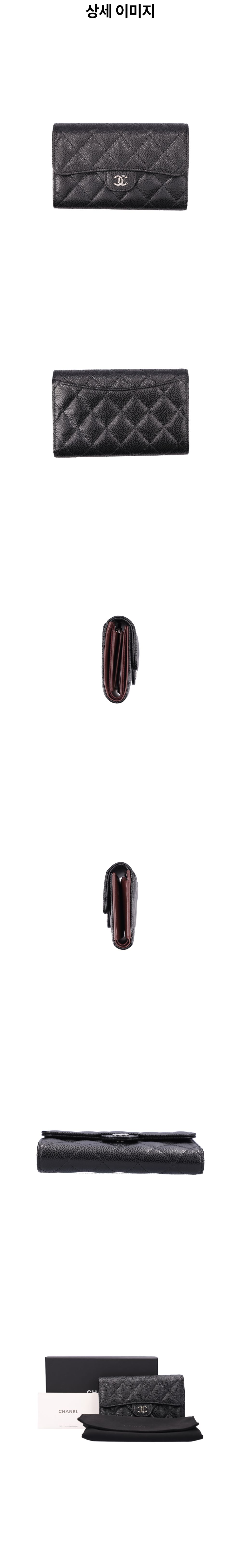 샤넬 AP0232 은장 블랙 그레인드(엠보) 카프스킨 클래식 플랩 중지갑