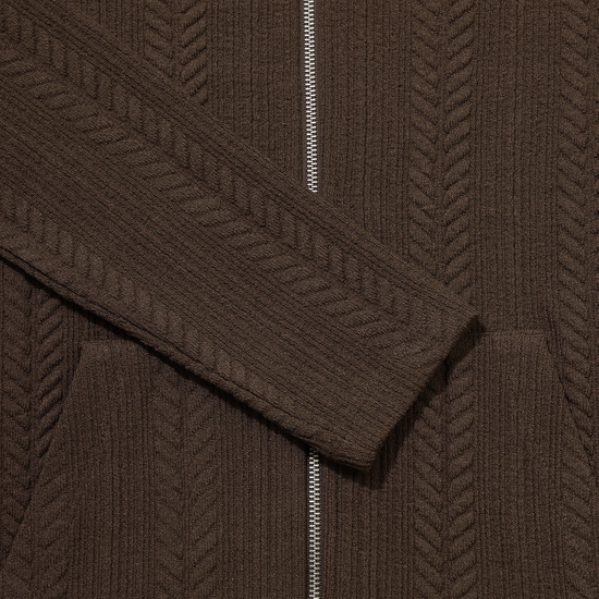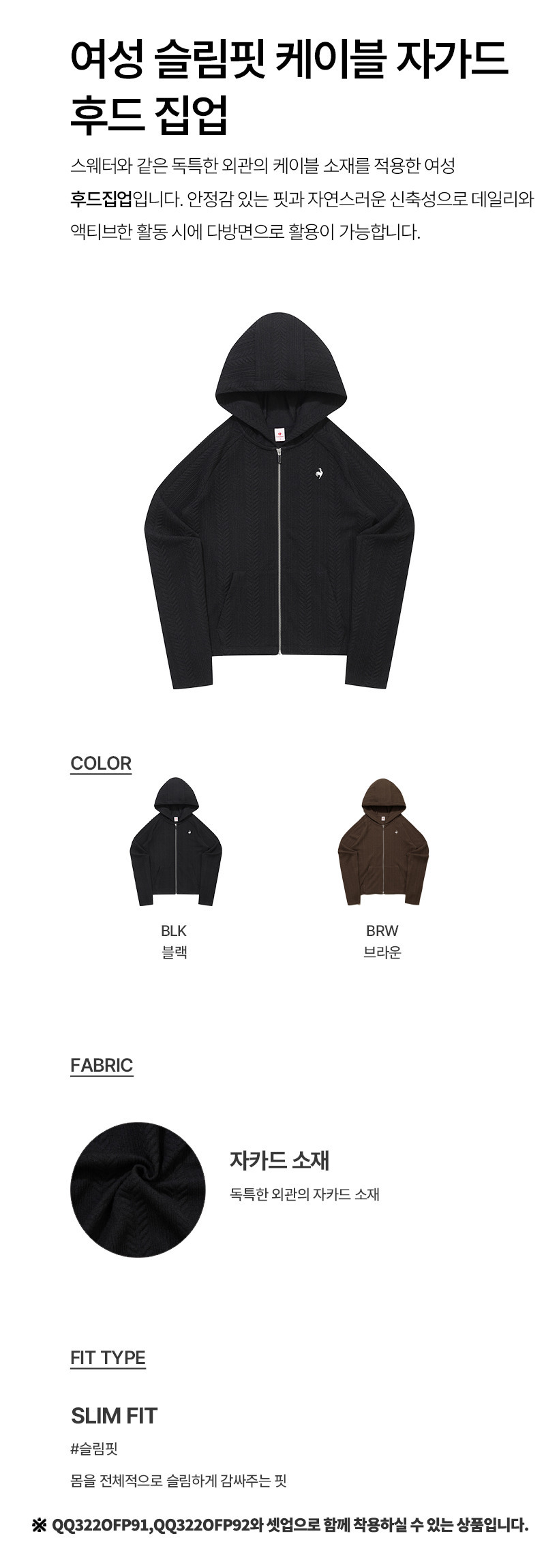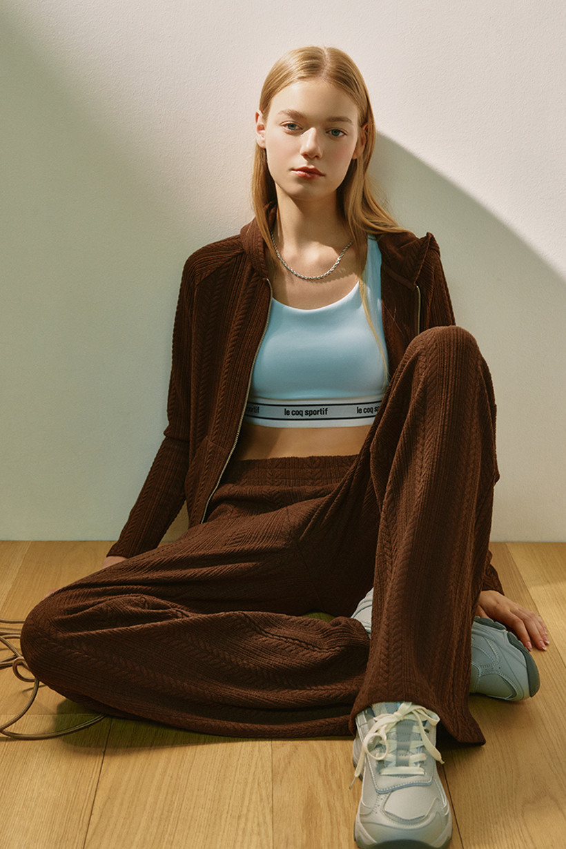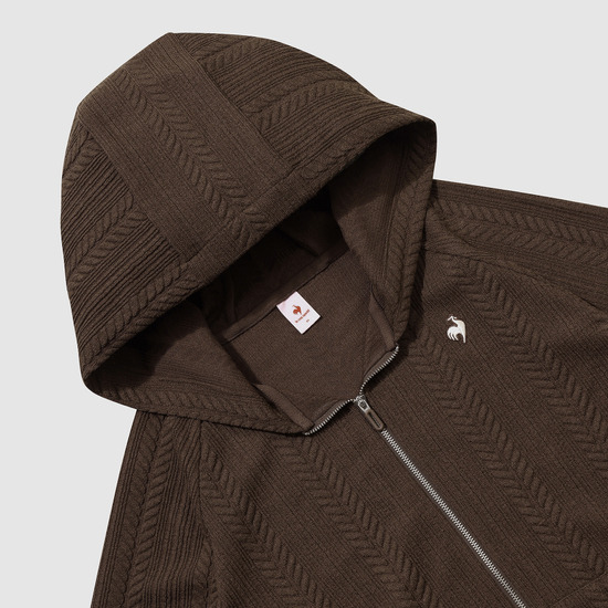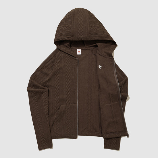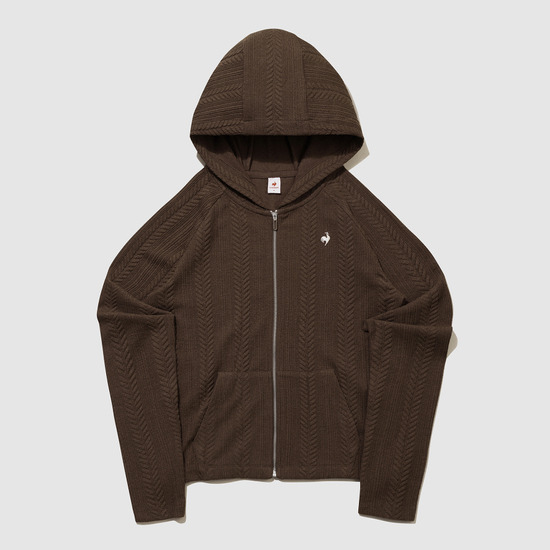 르꼬끄 스포르티브 여성 슬림핏 케이블 자가드 후드 집업 - 브라운(QQ322OFT91)