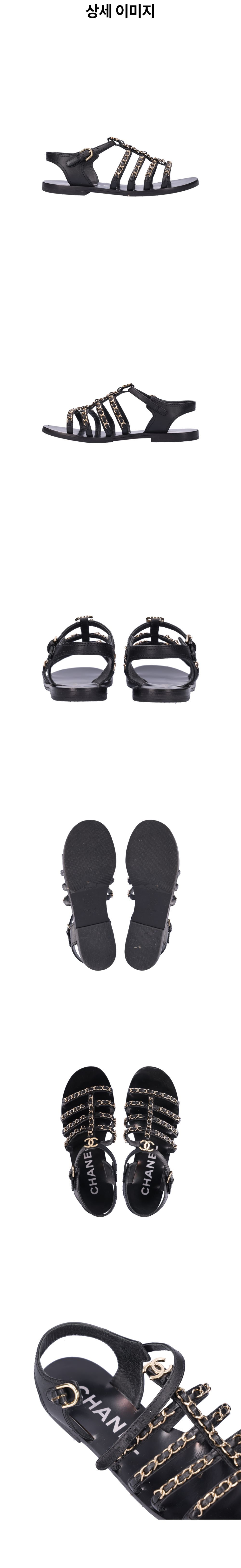 샤넬 G40077 CC 로고 체인 스트랩 샌들 블랙 골드 38 사이즈