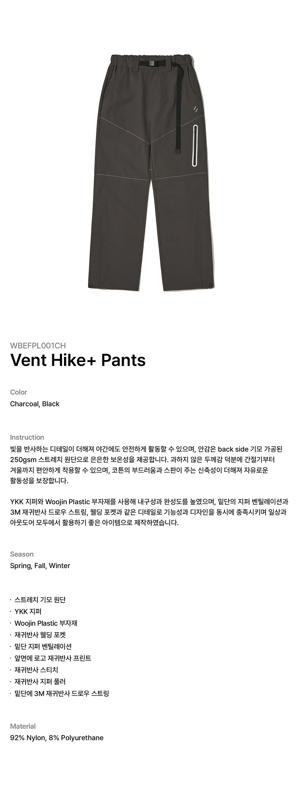 웰터 익스페리먼트 벤트 하이크+ 팬츠 차콜