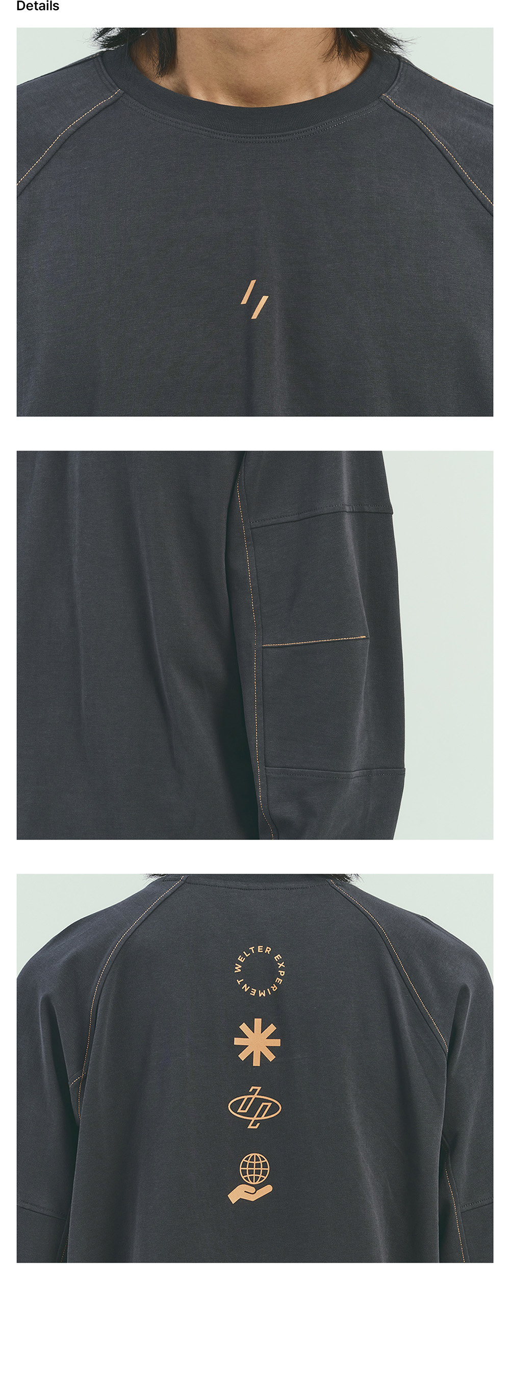 웰터 익스페리먼트 콘트레스트 스티치 파넬 슬리브 티셔츠 차콜