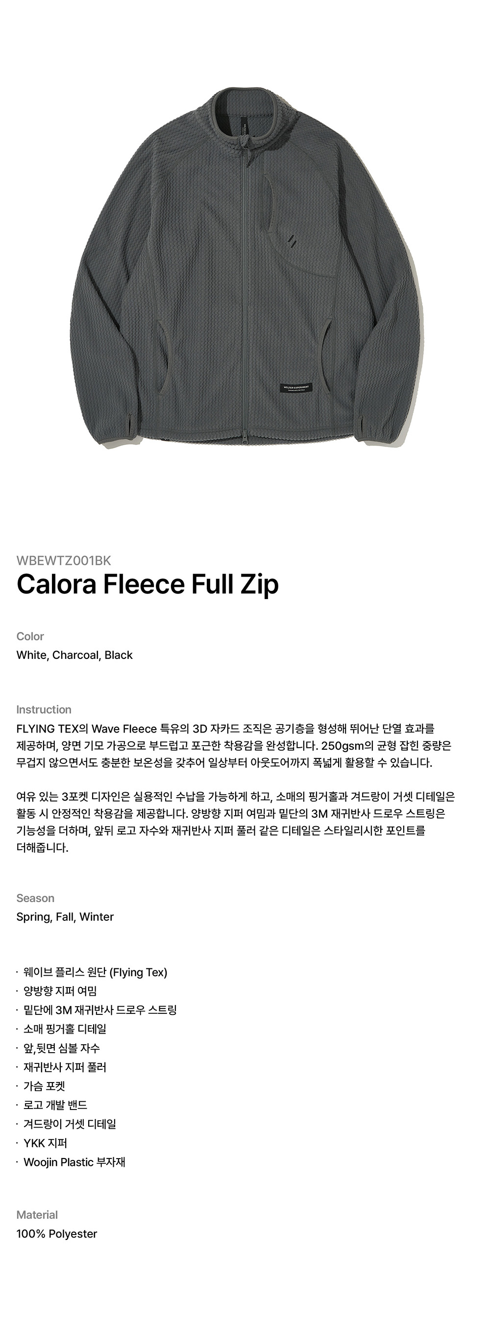 웰터 익스페리먼트 카로라 플리스 풀 집업 차콜