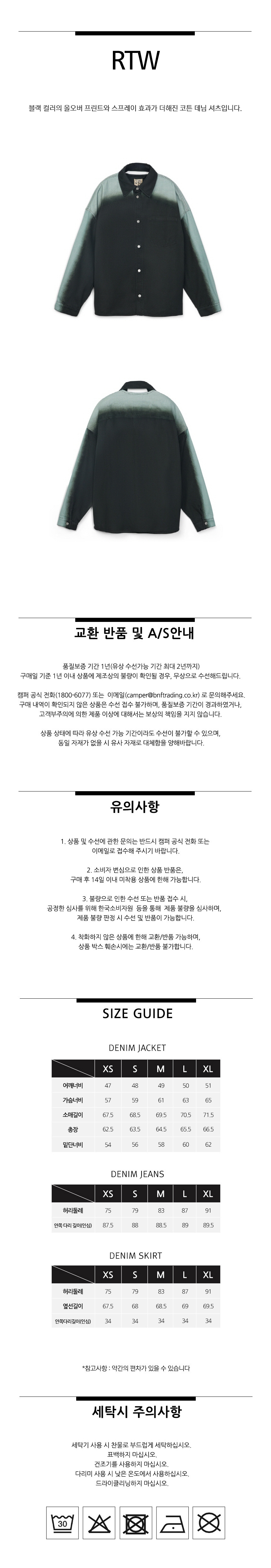 캠퍼 랩 스프레이드 데님 셔츠 페이디드 블랙