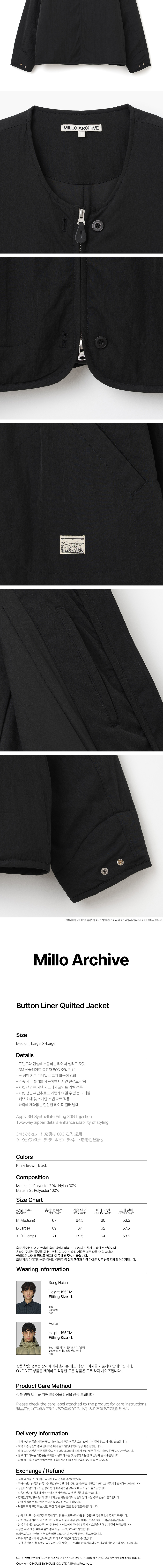 밀로 아카이브 버튼 라이너 퀼티드 자켓 블랙