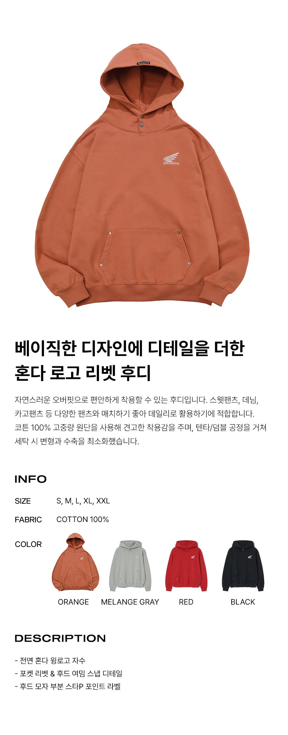 혼다 스몰 윙 리벳 포인트 후디 오렌지