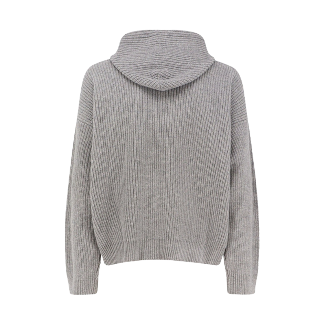 셀린느 립드 니트 어드저스터블 드로우스트링 후드 라이트 그레이