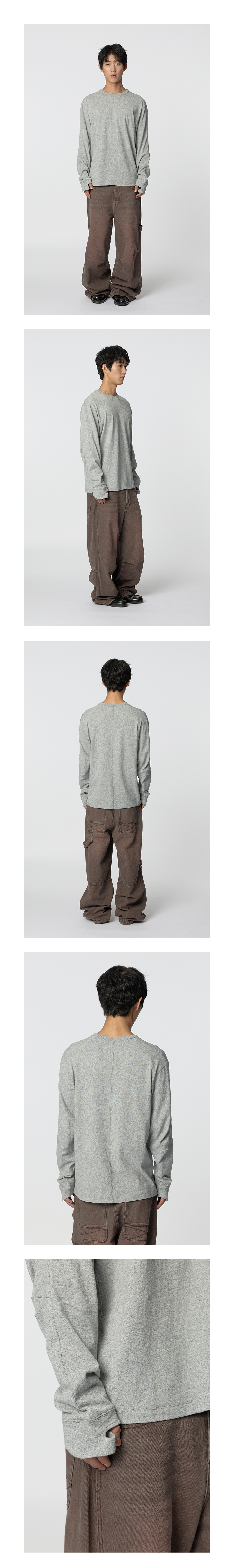 - 레귤러 핏 - 데일리 웨이트 얇은 싱글지 사용 - 뒷센터 라인 디테일 - 소매 다트디테일 - 소매단 핑거홀 - 25SS GLOVE LONG SLEEVE 디벨롭VER. MADE IN CHINA