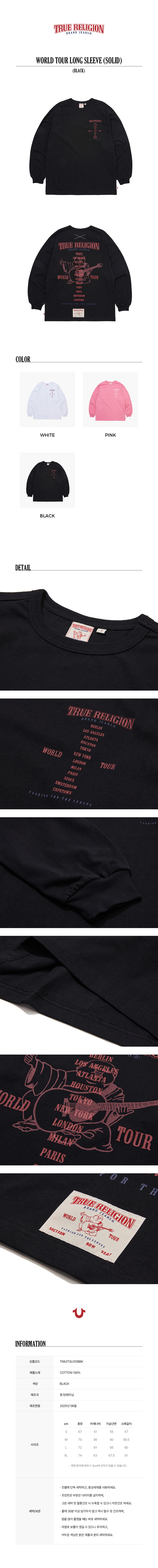 트루릴리젼 월드 투어 롱 슬리브 솔리드 블랙