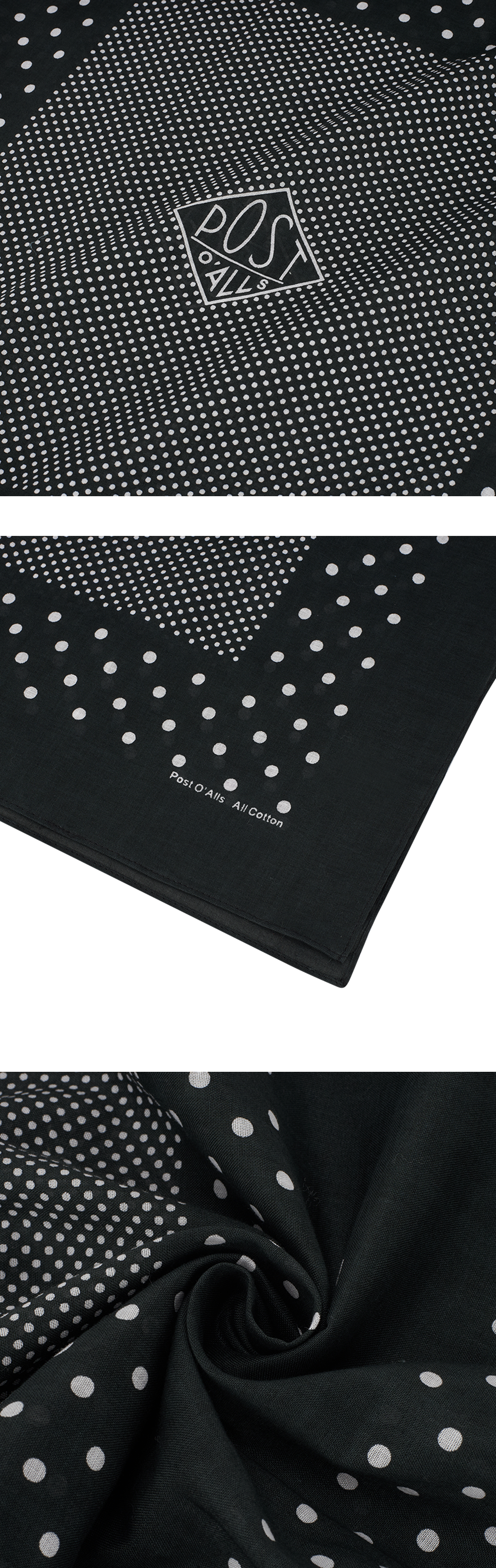포스트 오버롤즈 반다나 스카프 오리지널 1993 디자인 차콜입니다. - Post O’Alls의 1993년 오리지널 반다나 디자인을 복각한 스카프 - 듀얼 도트 패턴 - 중앙 로고 포인트 - 스카프, 머플러, 헤어밴드 등 다양하게 연출 가능