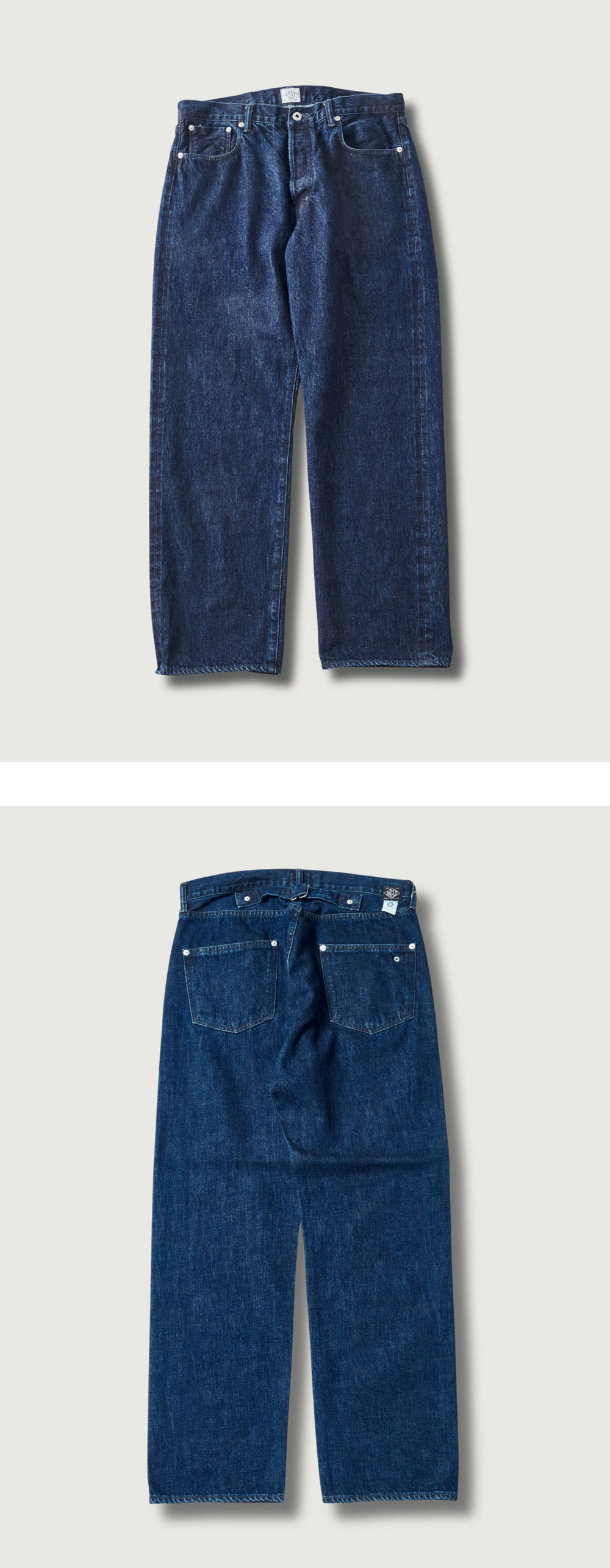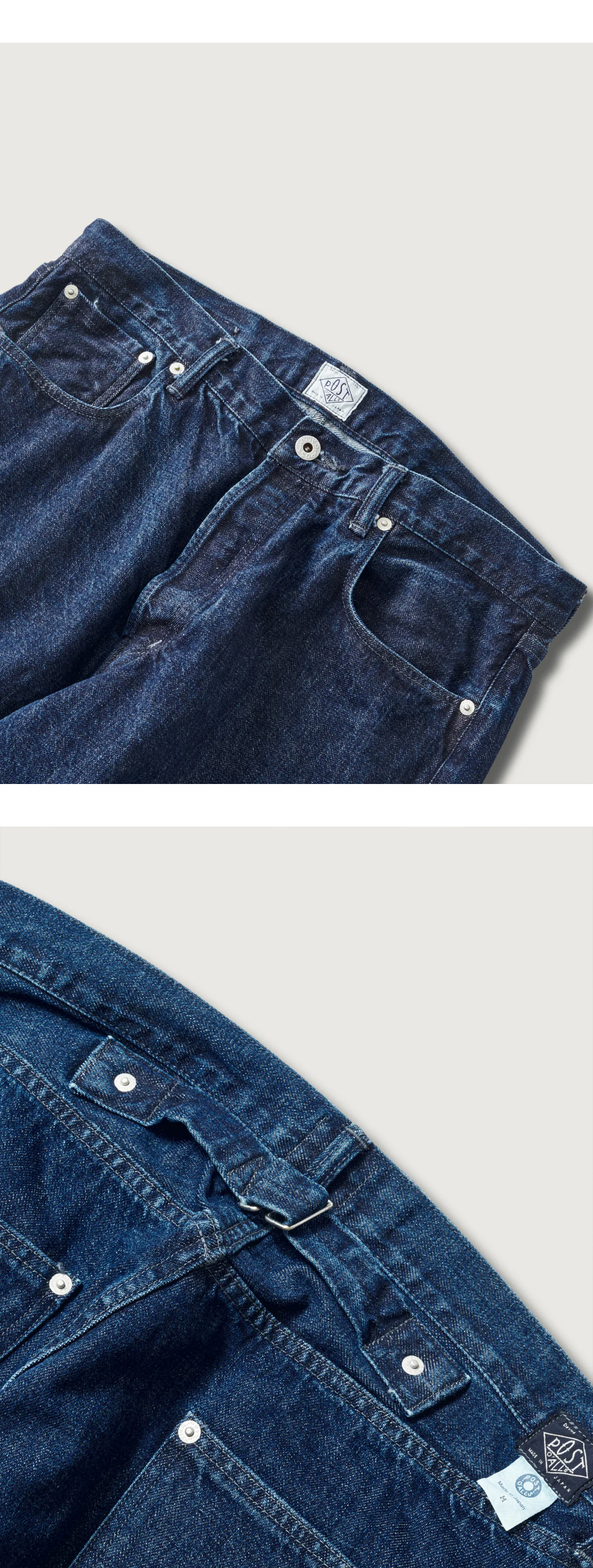 Levi’s 501을 기반으로 한 포스트 오버롤즈 No. 10 파이브 포켓 인디고 딥 워시입니다. - 빈티지 웨어와의 조화를 염두에 둔 디자인 - 적당히 루즈한 실루엣, 허리 백 스트랩, 힙 포켓의 노출 리벳 디테일 - 익숙하면서도 새롭게 느껴지는 핏으로 다양한 스타일에 자연스럽게 어울리는 아이템