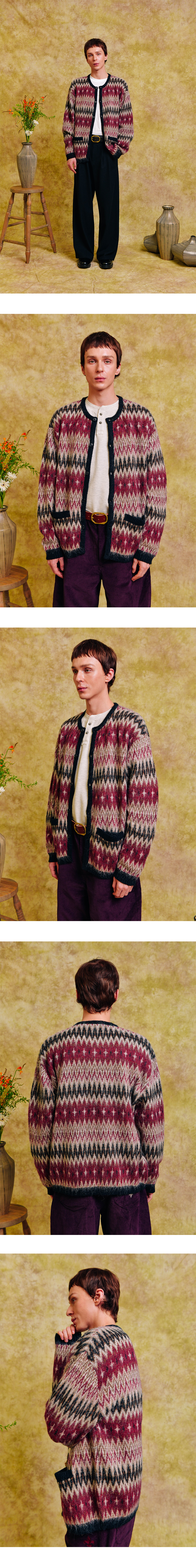 오가프 나바호 모헤어 자카드 카디건 레드