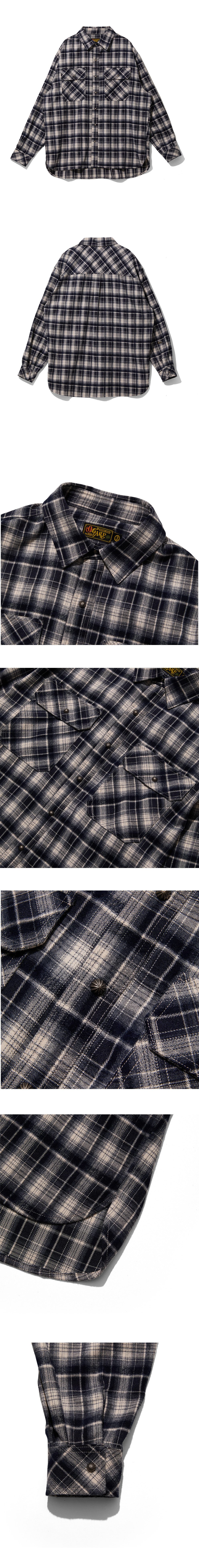 OGARP Concho Oversized Check Shirts Navy