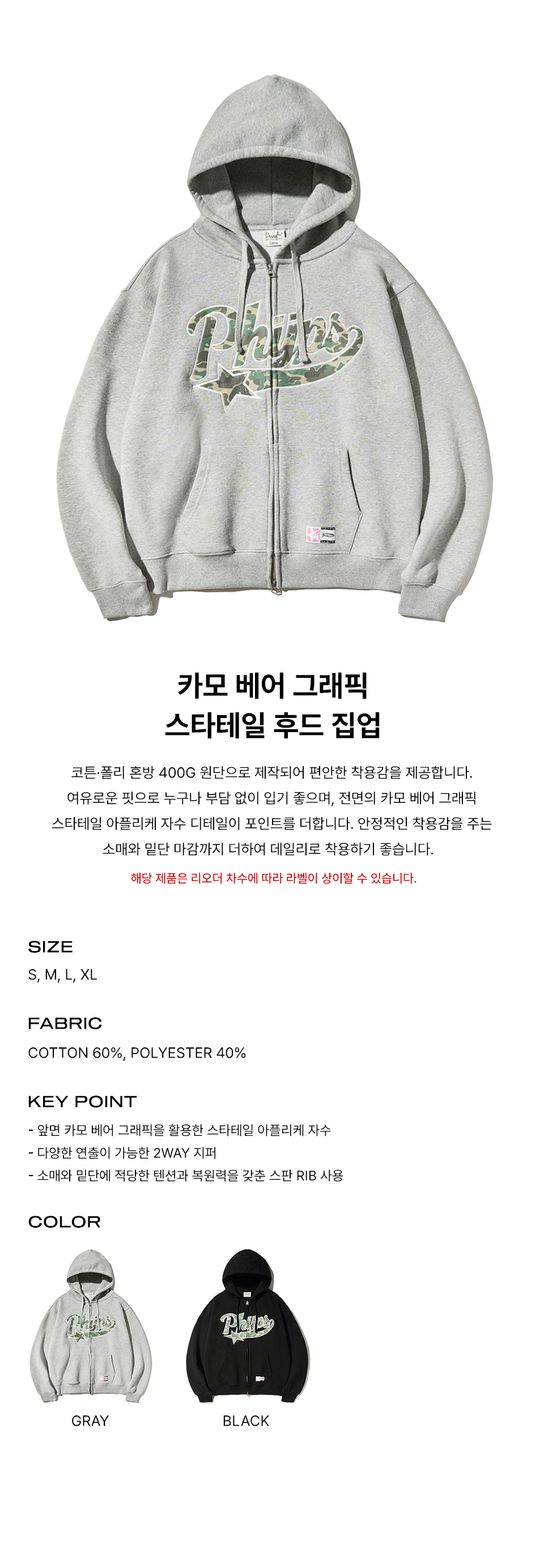피지컬 디파트먼트 스타테일 카모 후드집업 그레이