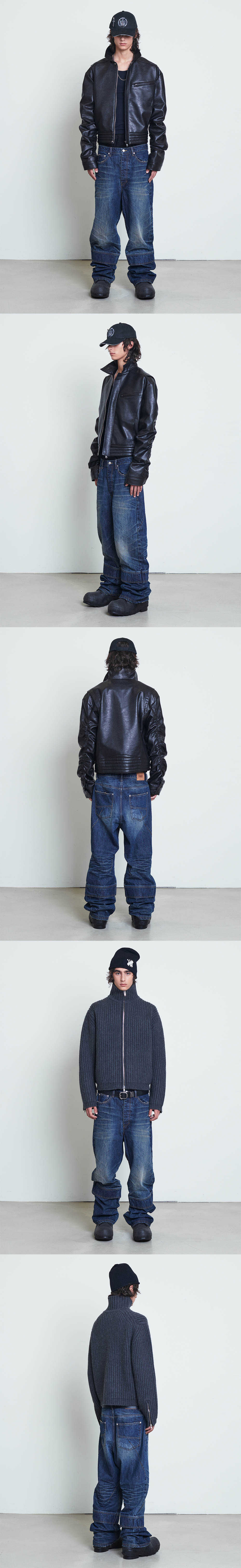 빈티지 페이드가 깊게 살아있는 와이드 데님 팬츠입니다. 탄탄한 데님을 거친 워싱으로 처리해 자연스러운 색 번짐과 입체감을 만들었고, 힙부터 여유롭게 떨어지는 루즈 스트레이트 핏이 다리를 길어 보이게 합니다. 종아리 위치의 수평 절개 라인과 롱 인심이 만들어내는 풍부한 스택 실루엣이 가장 큰 포인트. 내구성 높은 리벳·더블스티치, 5포켓과 가죽 패치까지 클래식 디테일을 가지고 있습니다