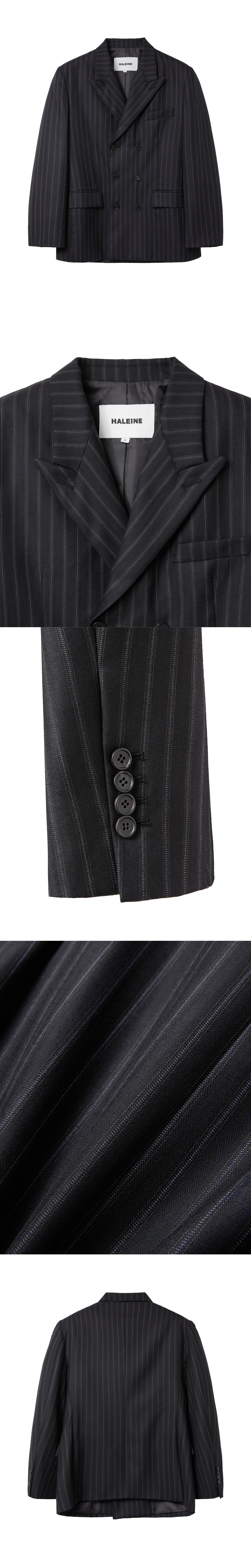 알렌느 스트럭쳐 핀스트라이프 더블 블레스트 자켓 블랙
