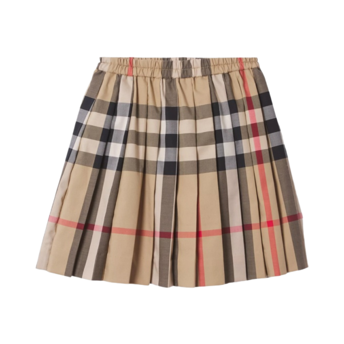 (키즈) 버버리 체크 스트레치 코튼 플리츠 스커트 아카이브 베이지