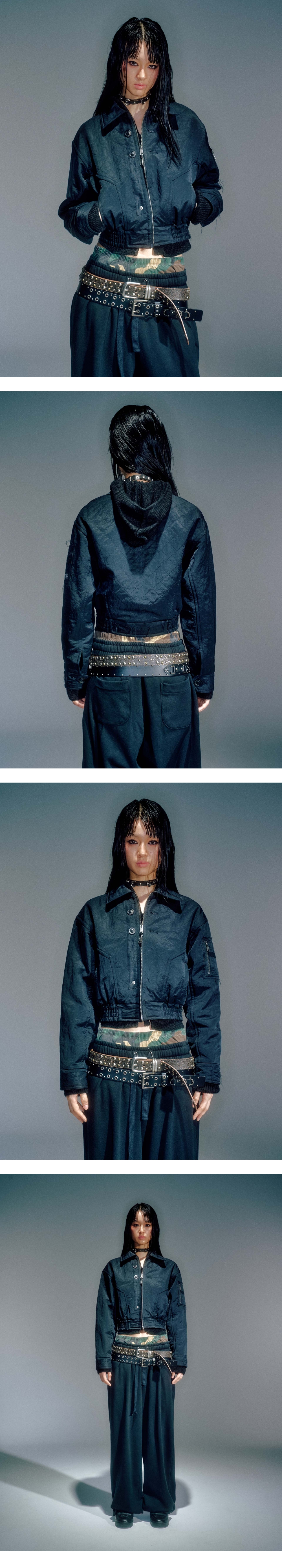 누빔처리 된 헤비트윌 원단 사용한 봄버 스타일의 자켓 리페인트한 빈티지 단추 사용 카라 디테일과 커프스 디테일로 빈티지한 무드 연출 YKK 2WAY 지퍼 사용 S/M (CM) Length : 49 / 51 Shoulder : 51 / 53 Bust : 47 / 49 Sleeve : 57 / 59 SHELL : NYLON 100% LINING : POLYESTER100%