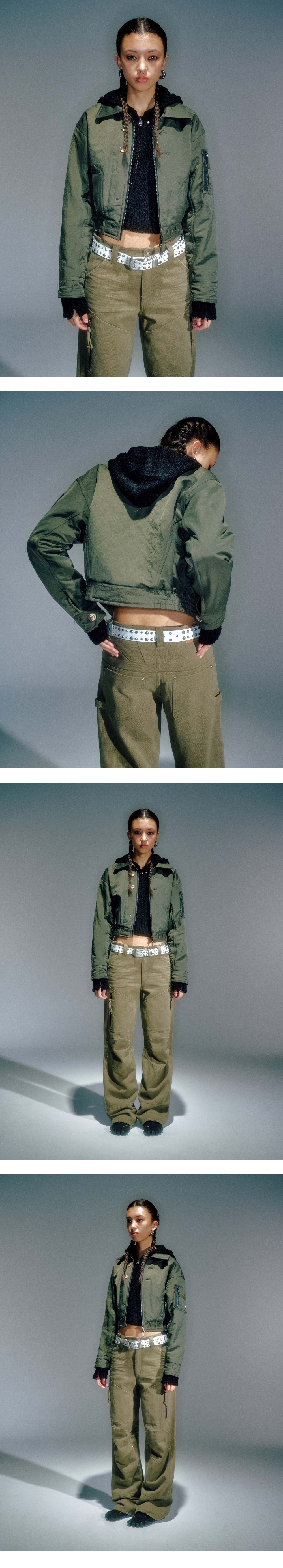 누빔처리 된 헤비트윌 원단 사용한 봄버 스타일의 자켓 리페인트한 빈티지 단추 사용 카라 디테일과 커프스 디테일로 빈티지한 무드 연출 YKK 2WAY 지퍼 사용 S/M (CM) Length : 49 / 51 Shoulder : 51 / 53 Bust : 47 / 49 Sleeve : 57 / 59 SHELL : NYLON 100% LINING : POLYESTER100%