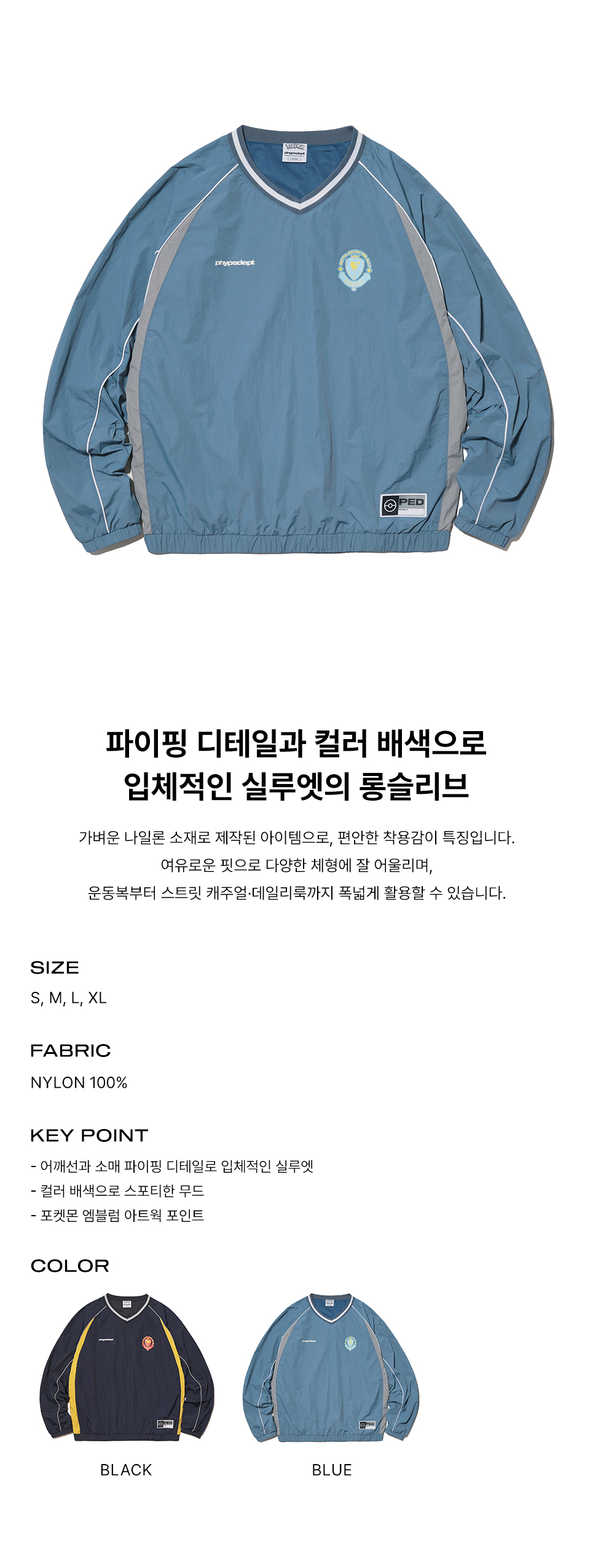 피지컬 디파트먼트 포켓몬 파이핑 나일론 롱 슬리브 블루