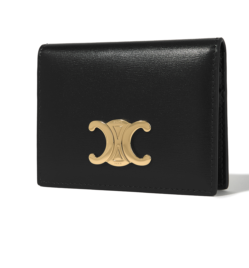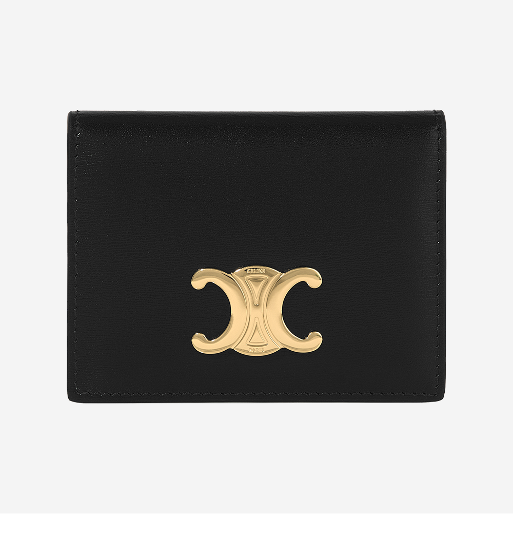셀린느 바이폴드 카드 홀더 샤이니 카프스킨 블랙