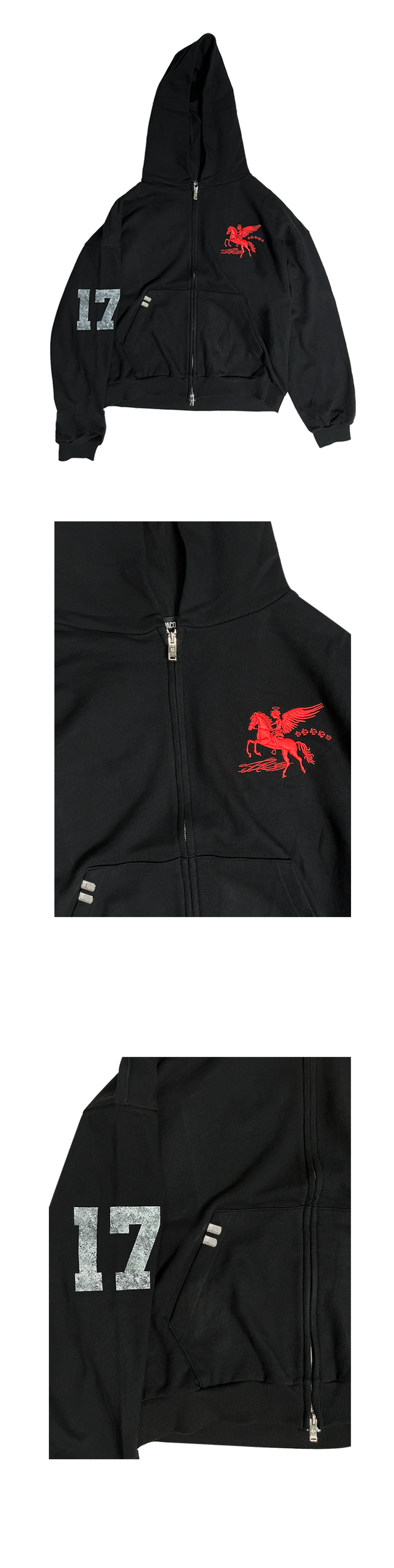 [트리플적립] PACOSPLY Falling Angel Zip Up Hoodie Black