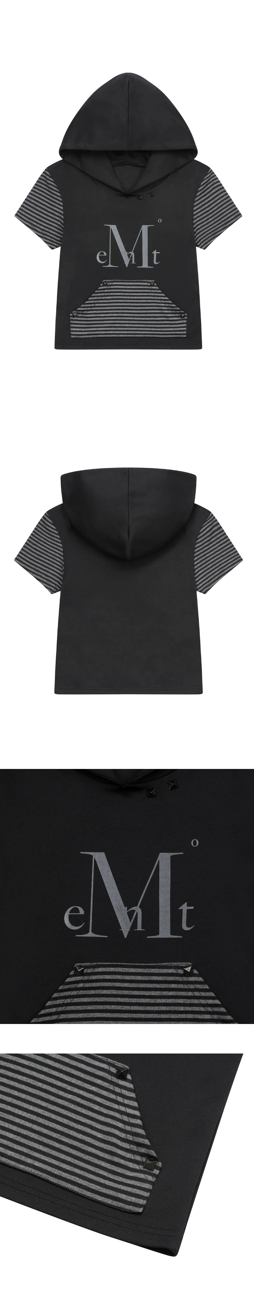 무센트 닙스 셋업 스트라이프 배색 반팔 후드 티 블랙