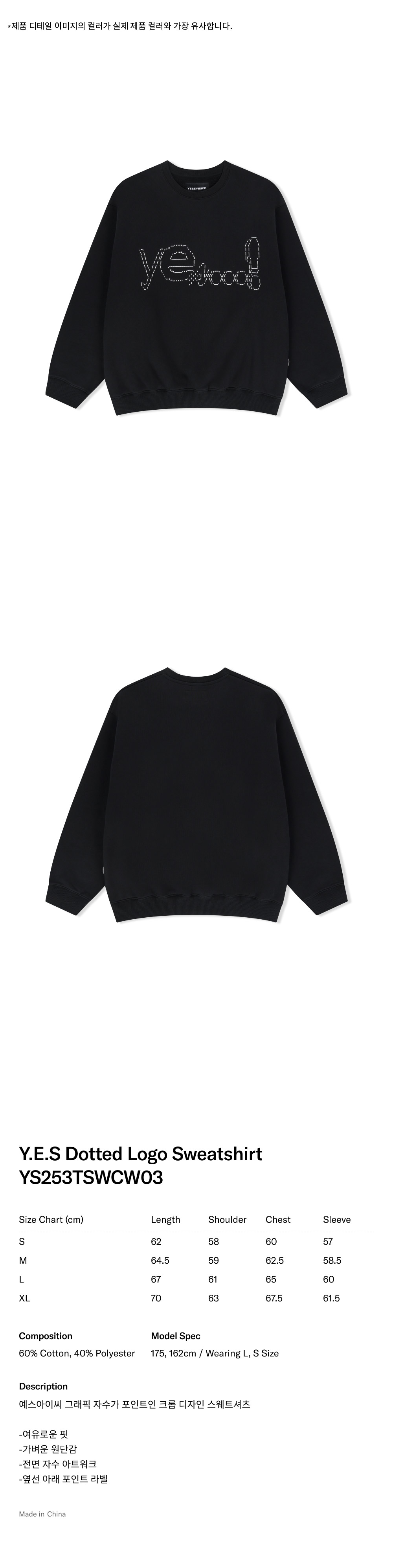 예스아이씨 예스 도트 로고 스웨트셔츠 블랙