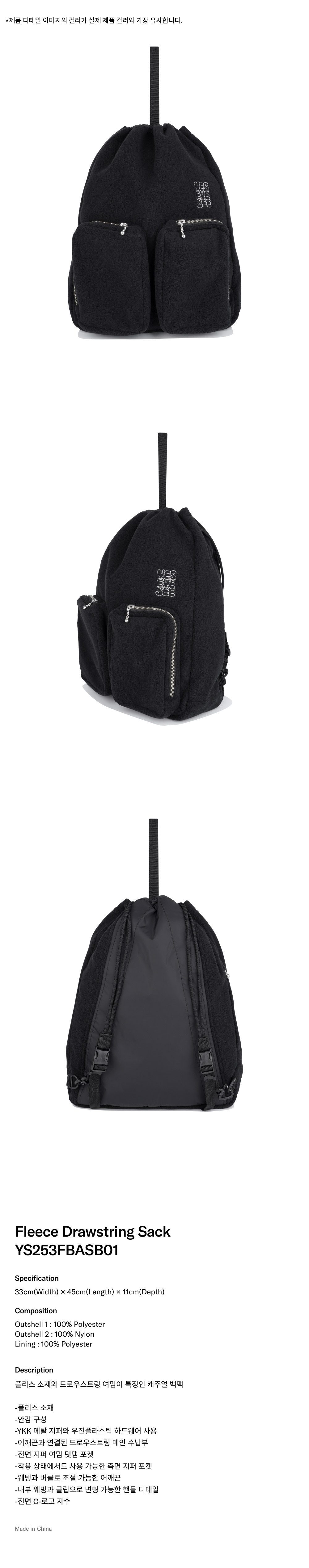 예스아이씨 플리스 드로우스트링 색 블랙