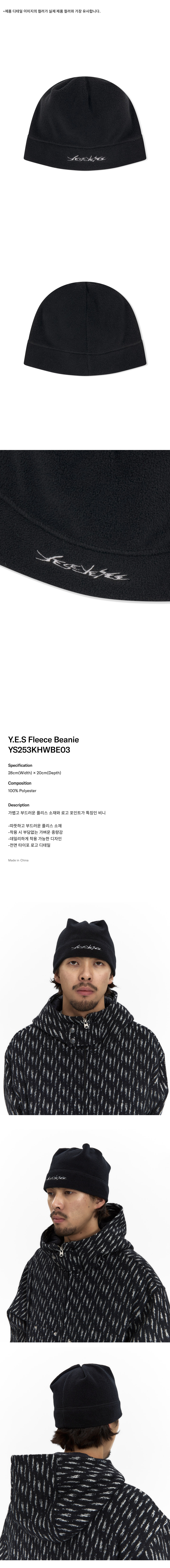 예스아이씨 예스 플리스 비니 블랙