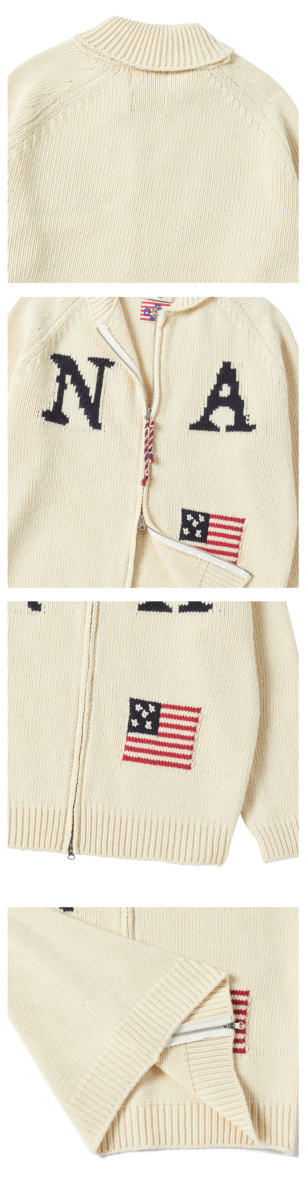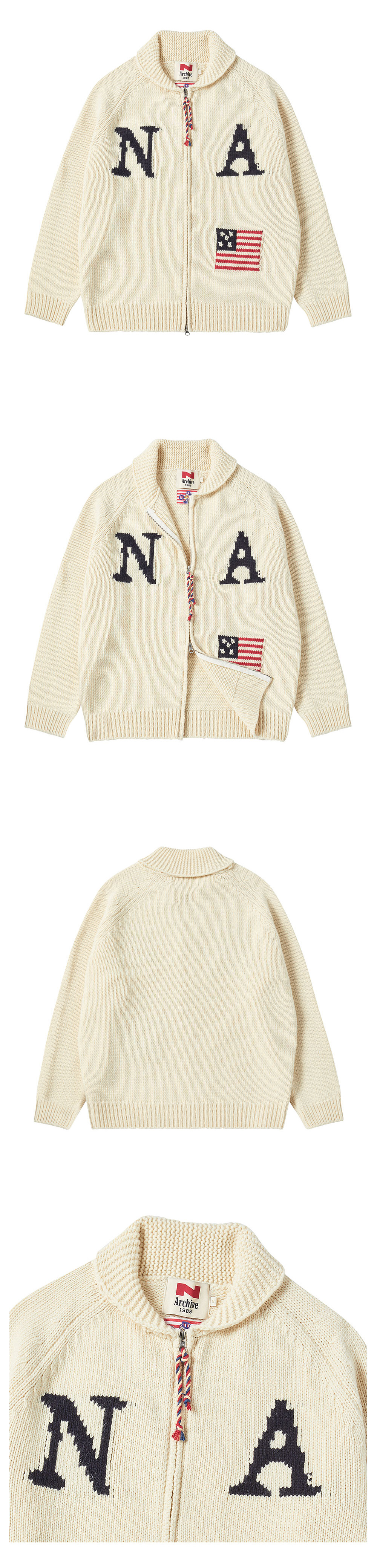 ㆍ한정 수량으로 제작된 컬렉션 라인의 니트 코위찬 점퍼 ㆍ고 퀄리티의 램스울 혼방 소재를 사용하여 클래식한 무드를 더함 ㆍ유니크한 요소들의 로고와 디테일로 90년대 빈티지의 복각 ㆍ핸드 메이드로 구현된 로고 디테일 ㆍ세미 오버 핏으로 자연스러운 실루엣 연출 ㆍYKK 지퍼와 빈티지 스트링 등 사용 ㆍ유니섹스 상품으로 제작