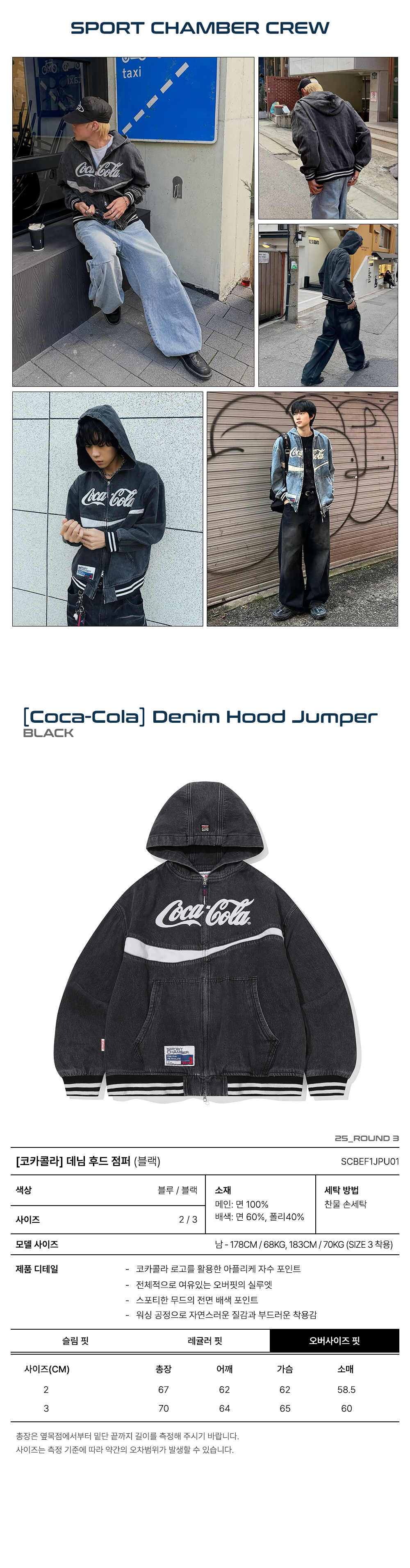 스포츠챔버 x 코카콜라 데님 후드 점퍼 블랙