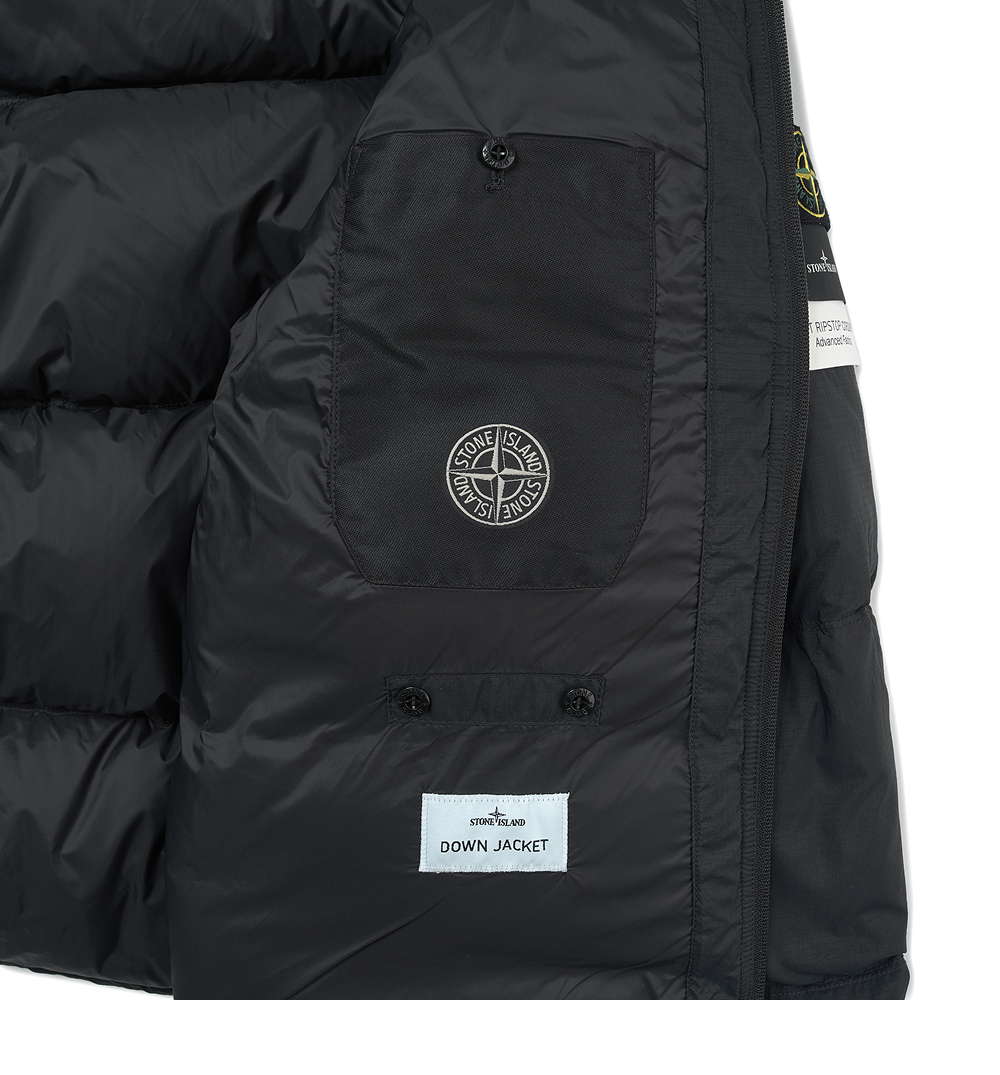 스톤 아일랜드 4100019 매트 립스탑 코듀라 어드밴스드 패브릭스 다운 파카 워터 레지스턴스 앤 스냅 포켓 블랙 - 25FW