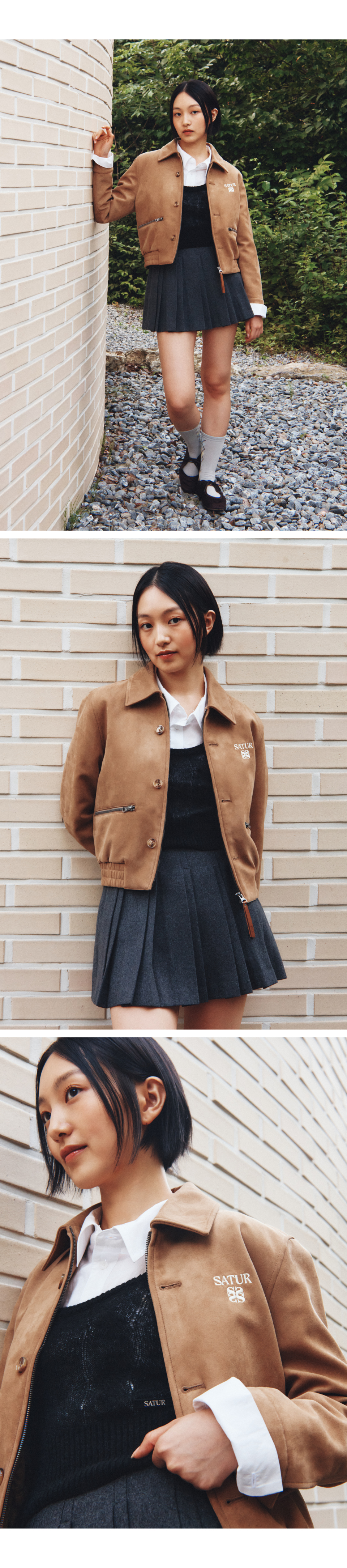 세터 우먼 테오 폭스 스웨이드 숏 자켓 베이지
