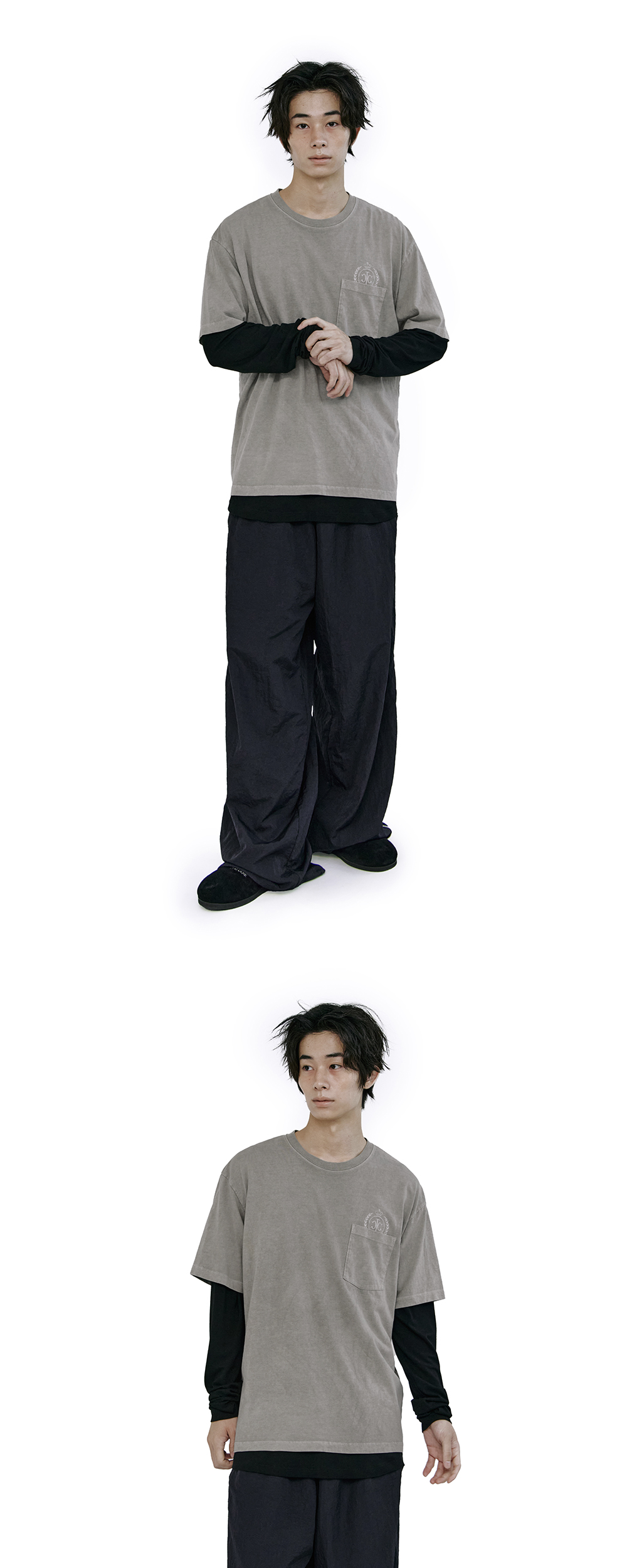 폴리테루 휴먼인덱스 휴먼 포켓 엠블럼 티셔츠 더티 그레이