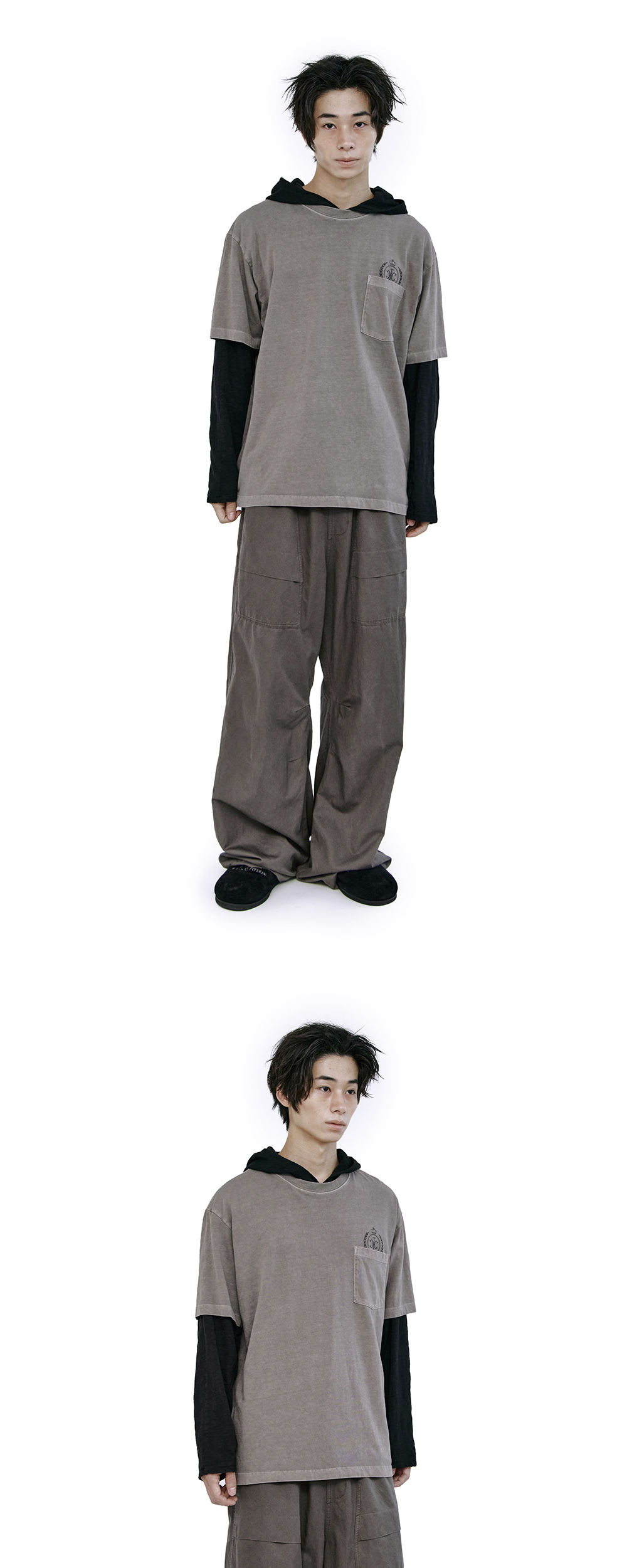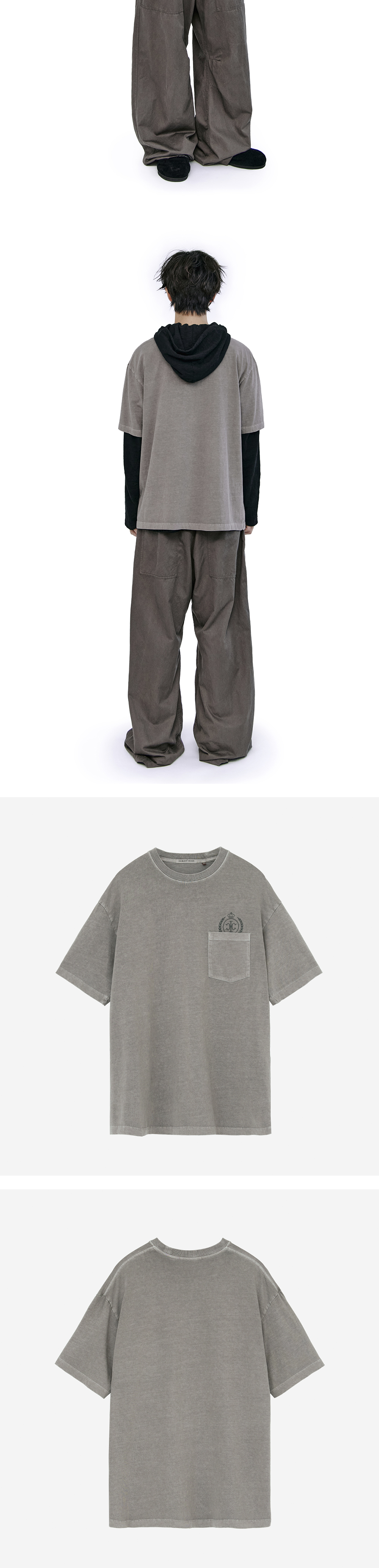 폴리테루 휴먼인덱스 휴먼 포켓 엠블럼 티셔츠 모카 그레이