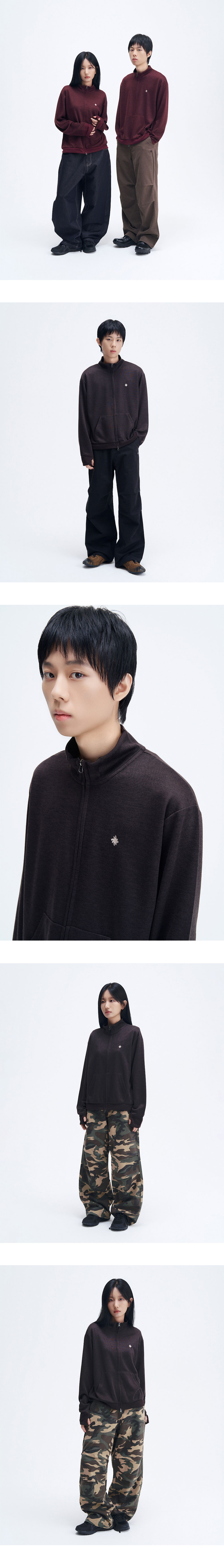 SLOW RECORD HOUSE Track Zip-Up Cardigan Brown