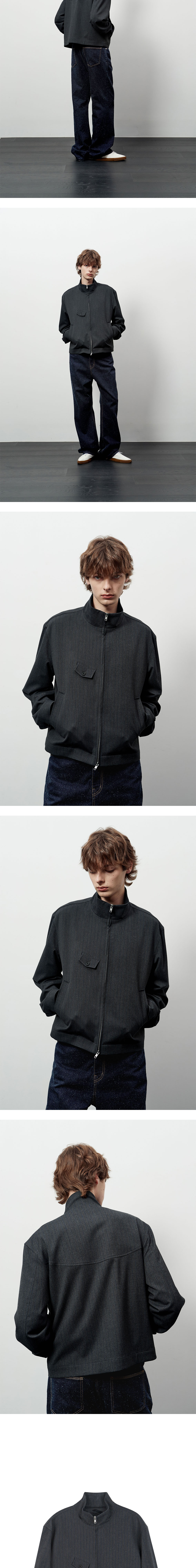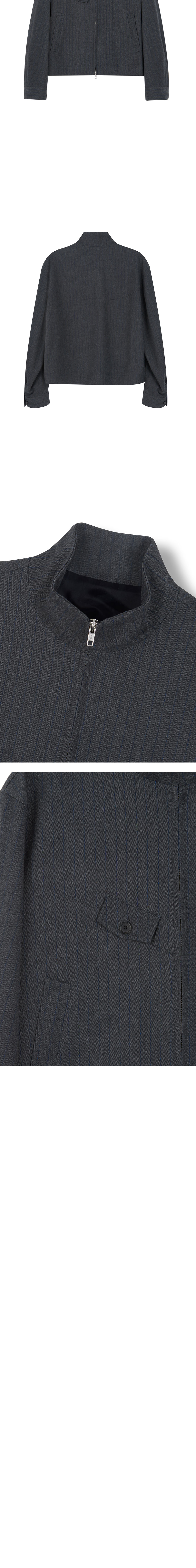 에스티유 하이넥 크롭 스트라이프 자켓 그레이