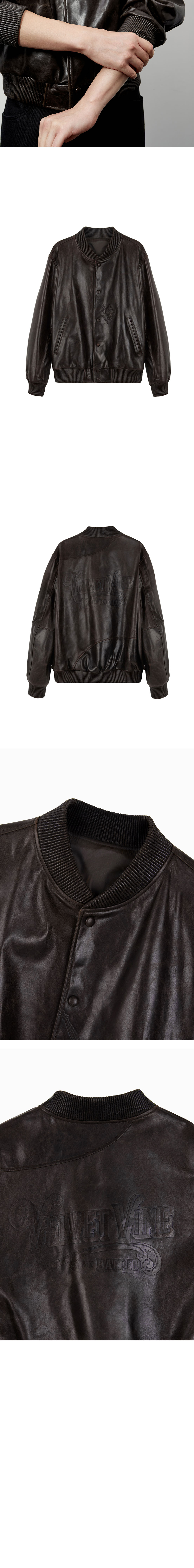 - 제원단 스냅 디테일 - 레더 시보리 디테일 - 음각 프린팅 디테일 - 등판 절개 디테일