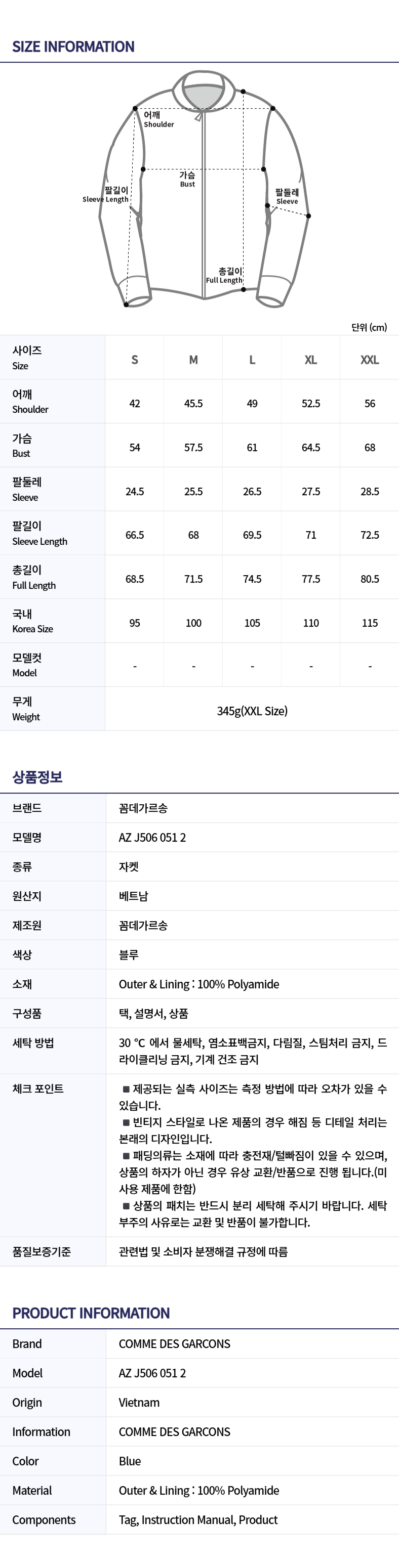 [20% 쿠폰] 꼼데가르송 X 까웨 후드 레인 자켓 블루