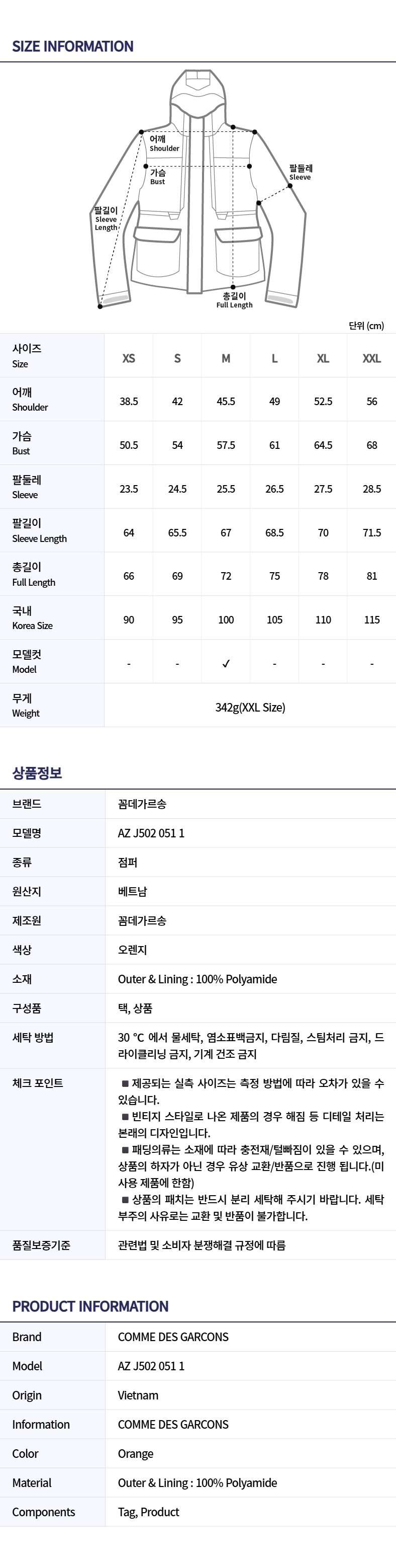 [20% 쿠폰] 꼼데가르송 X 까웨 후드 레인 자켓 오렌지