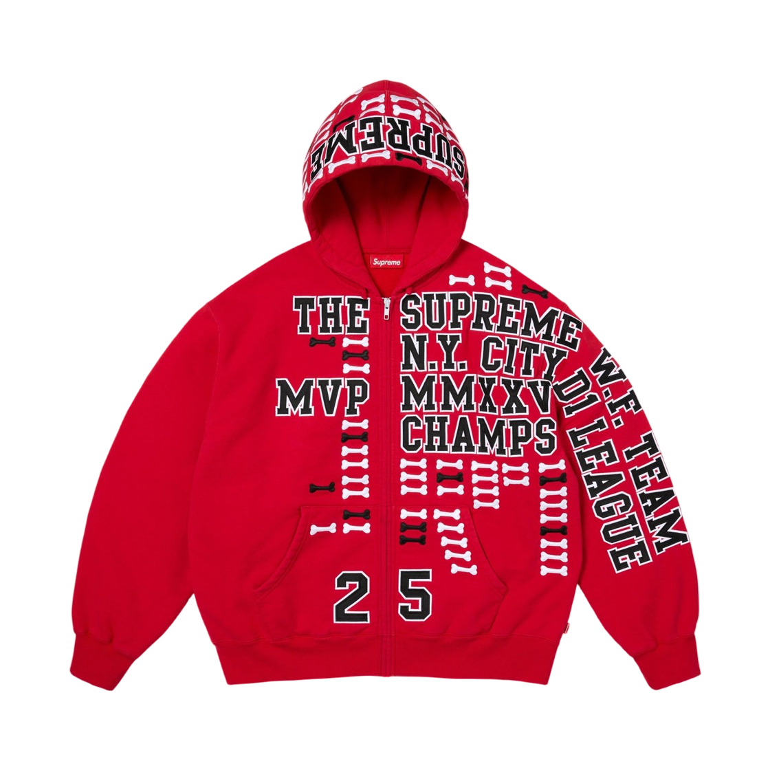 Supreme League Champs Zip Up Hooded Sweatshirt Red - 25FW