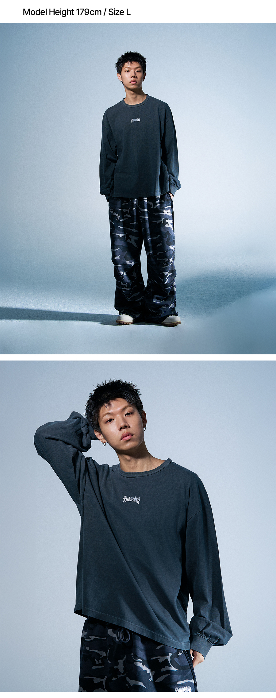 트레셔 플레임 로고 롱슬리브 차콜