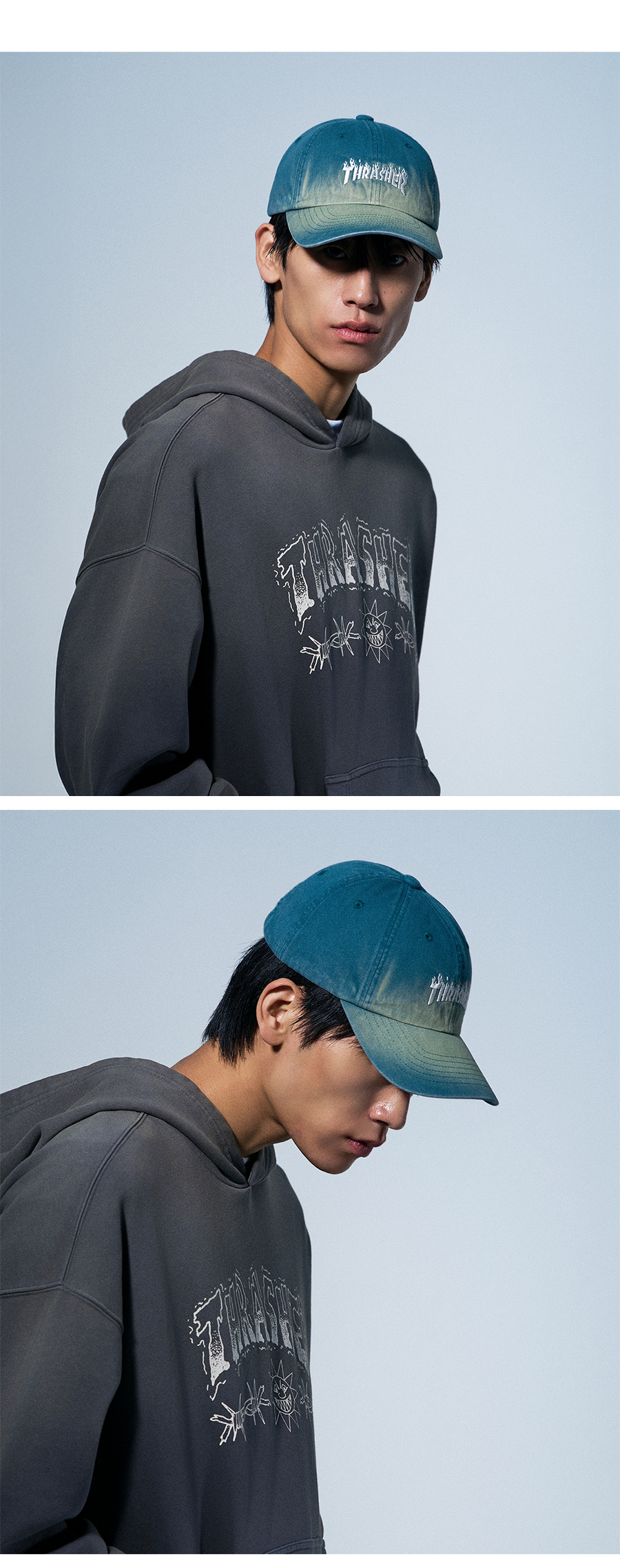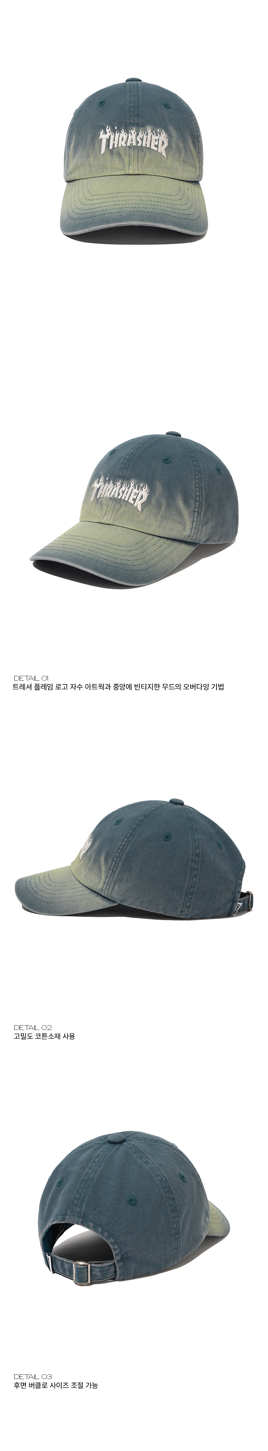 트레셔 플레임 오버다잉 로고 볼캡 다크 파인
