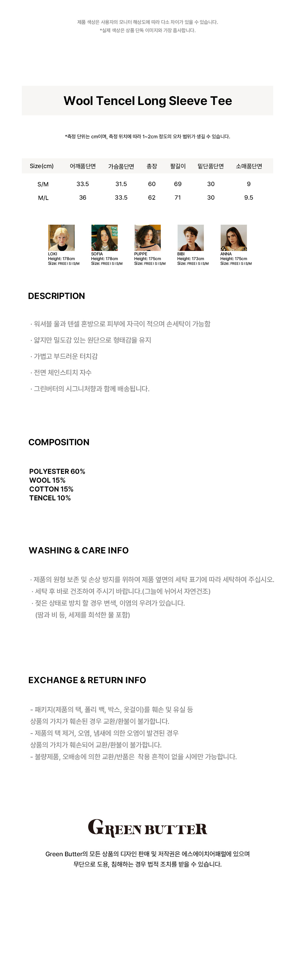 그린버터 울 텐셀 롱 슬리브 티 브라운