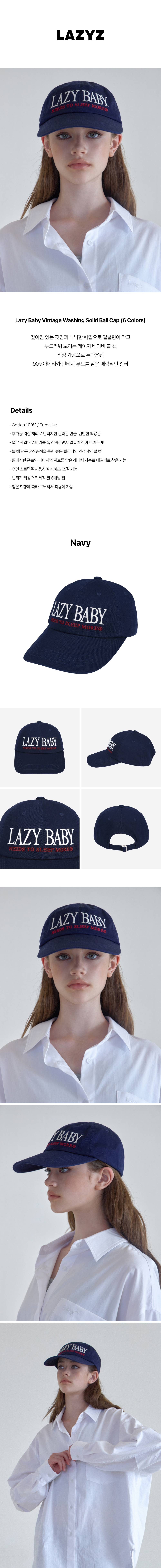 레이지지 레이지베이비 빈티지 워싱 솔리드 볼캡 네이비