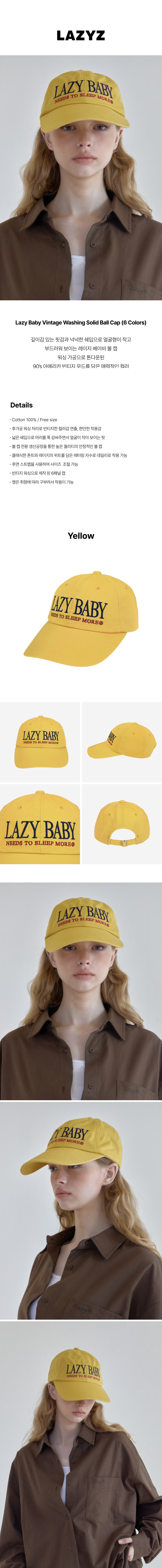 레이지지 레이지베이비 빈티지 워싱 솔리드 볼캡 옐로우