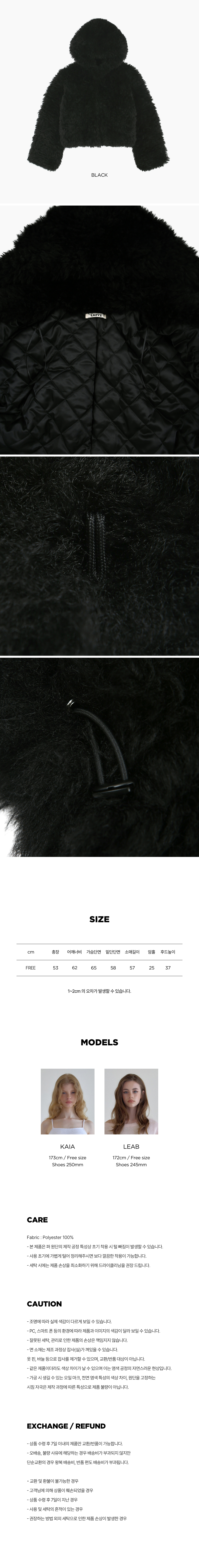 레이지지 토스티 퍼 후드 자켓 블랙